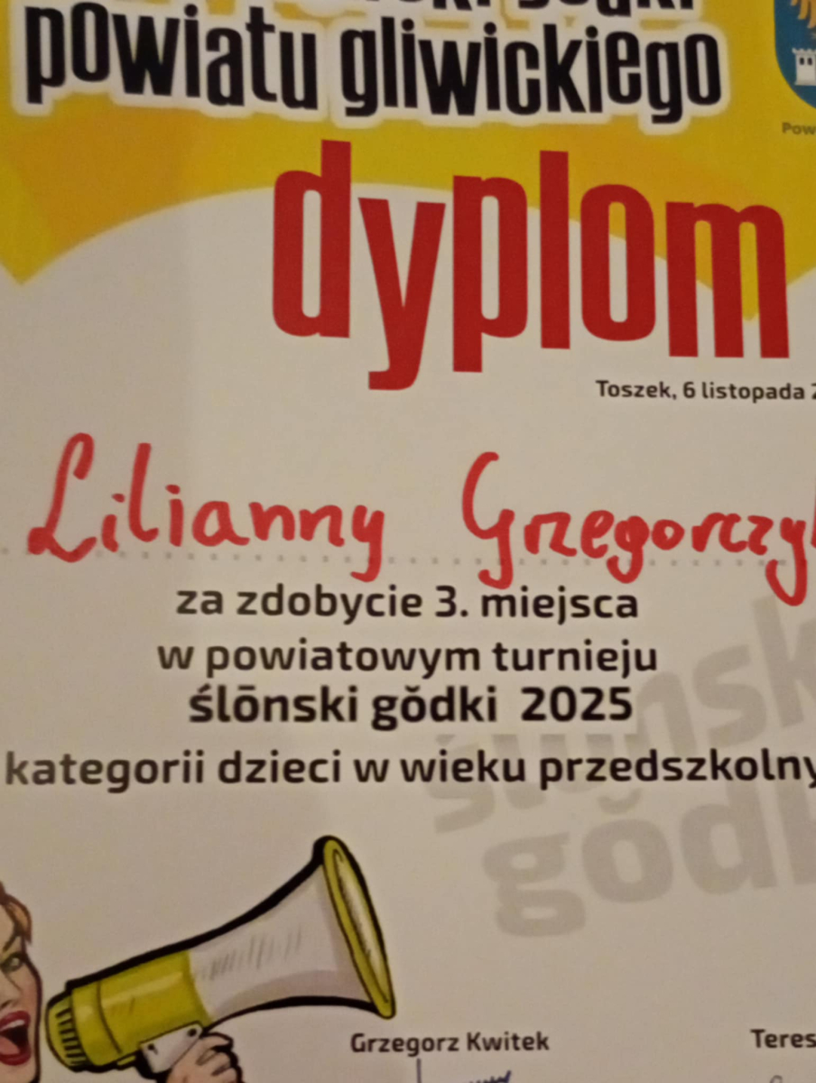 Z wielką radością informujemy, że nasza Lilianna Grzegorczyk zdobyła 3 miejsce w Powiatowym Turnieju Ślonski Godki. Jesteśmy bardzo dumni i serdecznie gratulujemy naszej laureatce ♥