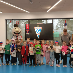 13.11 nasze przedszkole odwiedził piłkarz Górnika Zabrze oraz maskotka klubu Jorguś. Dzieci dowiedziały się jak dbać o zdrowie, odbyły krótki trening piłkarski, a na zakończenie otrzymały drobny upominek klubowy. Dziękujemy za odwiedziny!