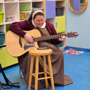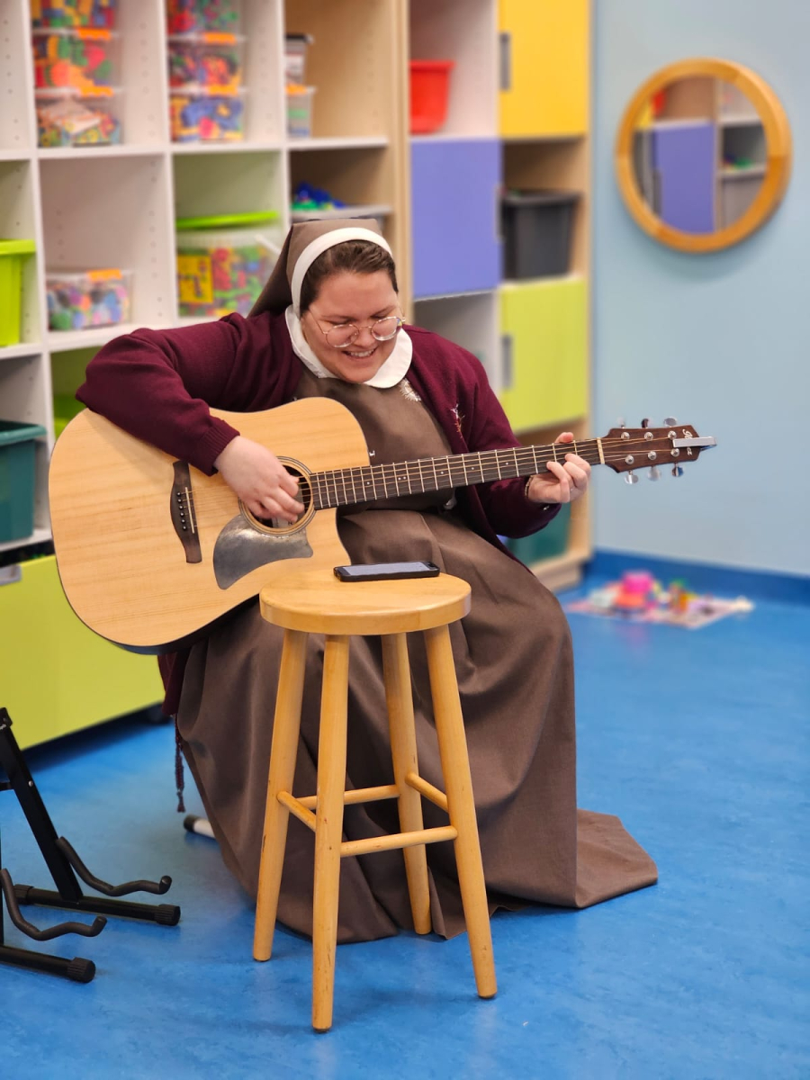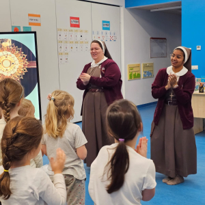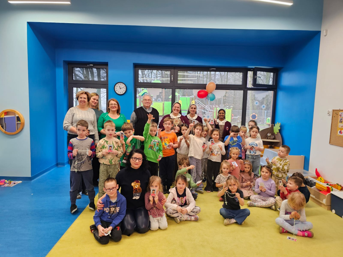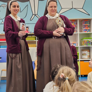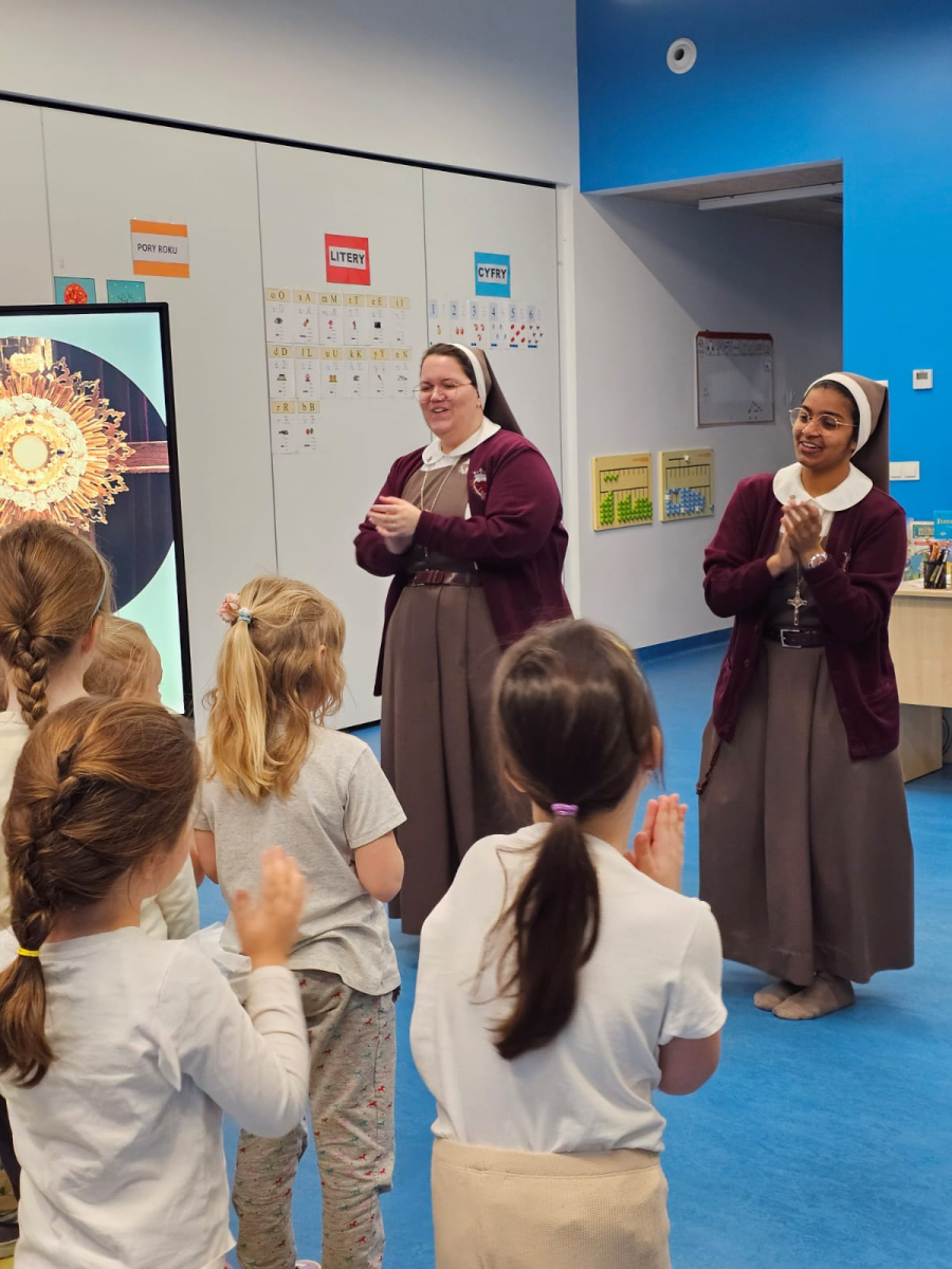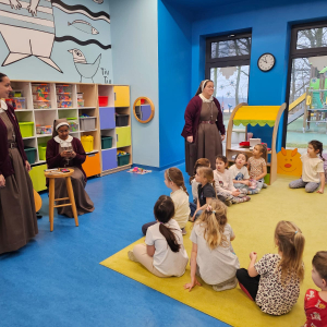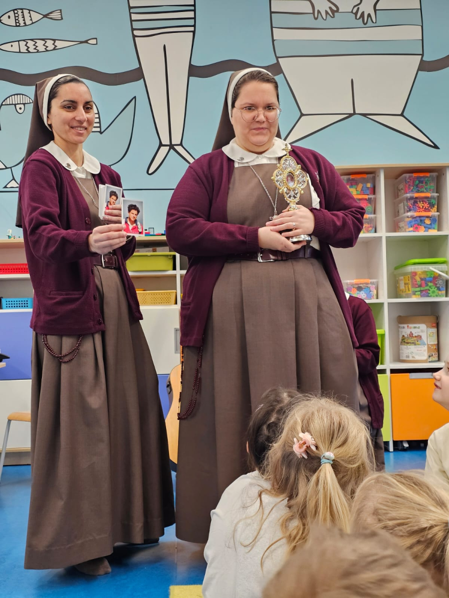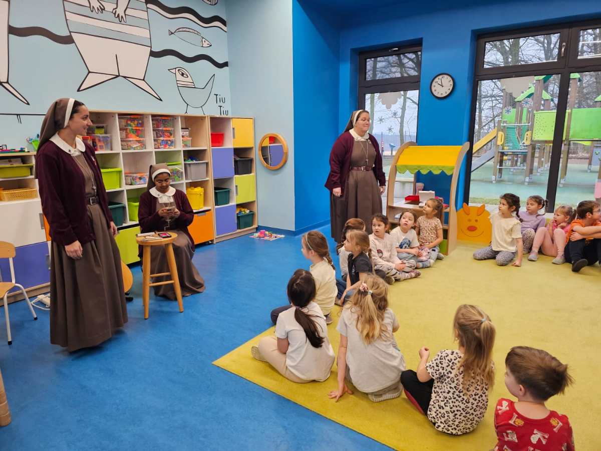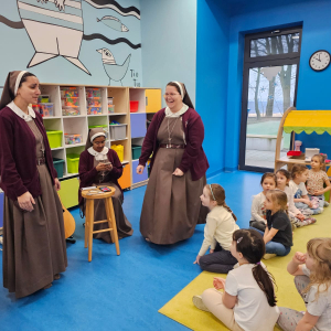 W naszym przedszkolu gościliśmy siostry zakonne z Miami, które poprowadziły wyjątkowe zajęcia religijne dla dzieci uczęszczających na religię. Podczas spotkania opowiedziały przedszkolakom o św. Carlo Acutis– młodym świętym, który swoim życiem pokazał, jak można łączyć wiarę z codziennością. Siostry przywiozły ze sobą również relikwie św. Carlo, co było dla dzieci szczególnym i poruszającym doświadczeniem.